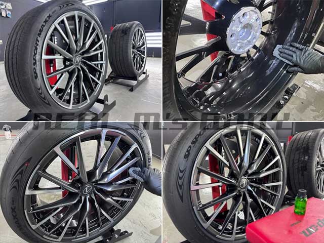 また、足元を支えるホイールには、表側だけでなく裏側まで丁寧にコーティング。ブレーキダストや雨ジミからしっかりガードし、洗車時のメンテナンス性も向上しています。